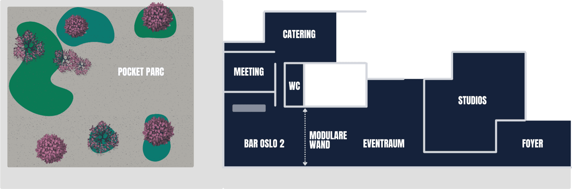 Die Eventräume der OSLO STUDIOS basieren auf einer Studioumgebung mit klarer Akustik und einer technischen Ausstattung für Ton, Licht und Video. Der Raum ist modular aufgebaut und eignet sich für Networking Events, kurze Inputs und informelle Gesprächsformate. Offene Zonen, kleine Bühnenflächen oder Empfangsbereiche lassen sich je nach Ablauf einrichten. Die Studios bieten einen geschlossenen Rahmen, der Begegnungen, Austausch und konzentrierte Gespräche zuverlässig unterstützt.