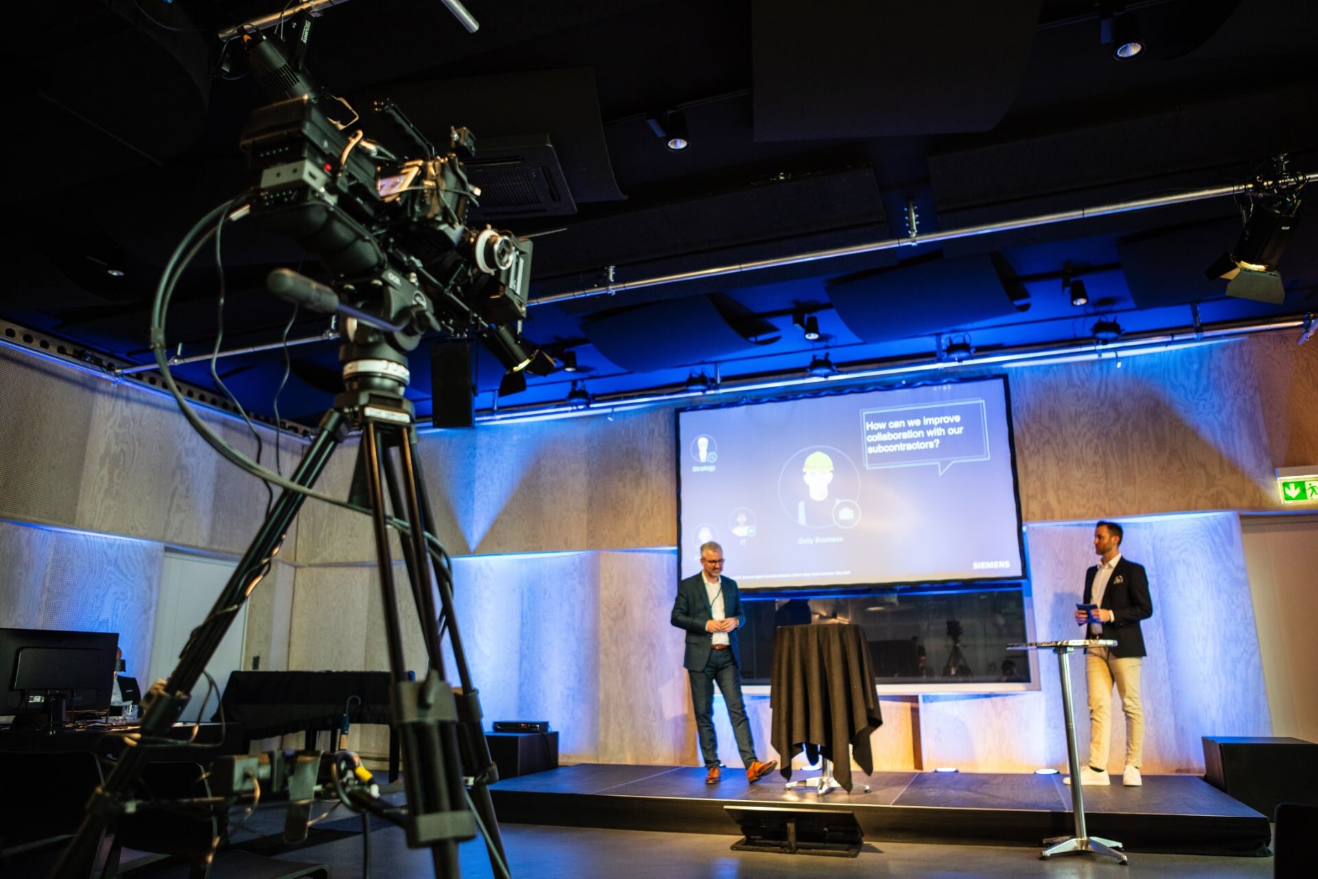 Vorhanden sind professionelle Audio- und Videotechnik, Bühne, Licht, Bildschirme, Zuschaltungen und stabile Akustik. Medien lassen sich ohne Zusatzaufwand einbinden. Live-Demos und hybride Formate sind problemlos möglich.