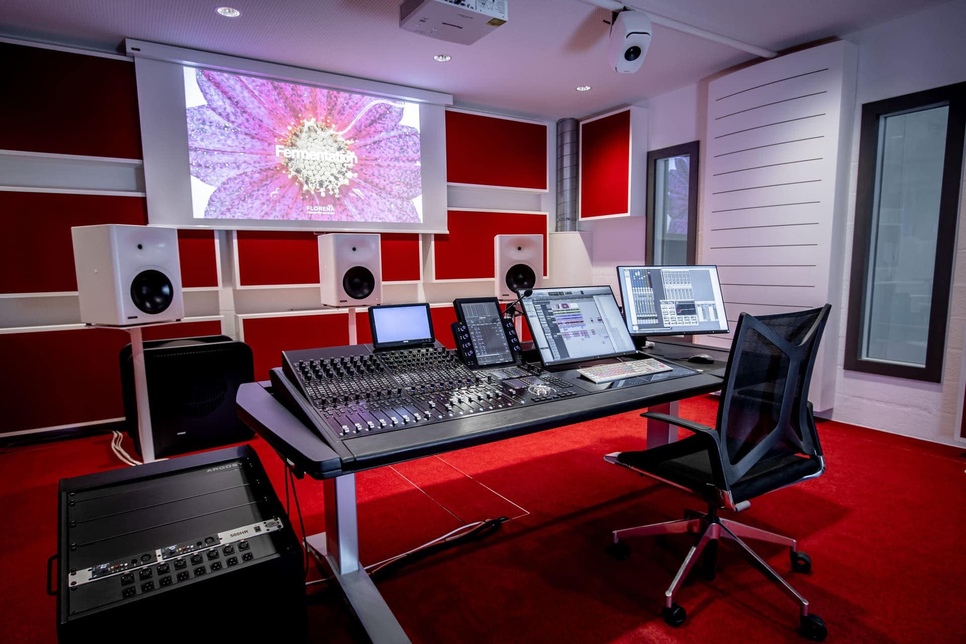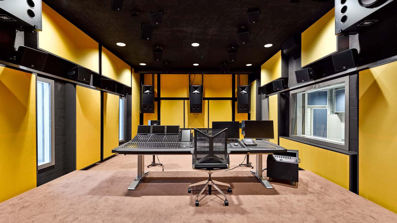 Studio 1 ist ein Dolby Atmos Cinema zertifiziertes Tonstudio. Akustik, Lautsprecheranordnung und Abhörsituation wurden geplant, gemessen und von Dolby vor Ort abgenommen. Der Raum ist für Kinomischungen und audiovisuelle Produktionen mit langfristiger Nutzung ausgelegt. Ein Arbeitsraum für Kinomischungen und Produktionen mit langfristiger Nutzung.